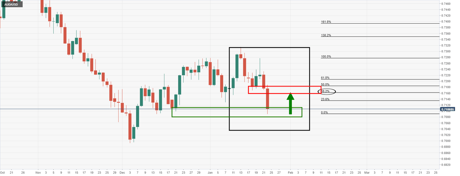 - AUD/USD bears are waiting in the wings of the Fed for a bullish outcome for the greenback.
