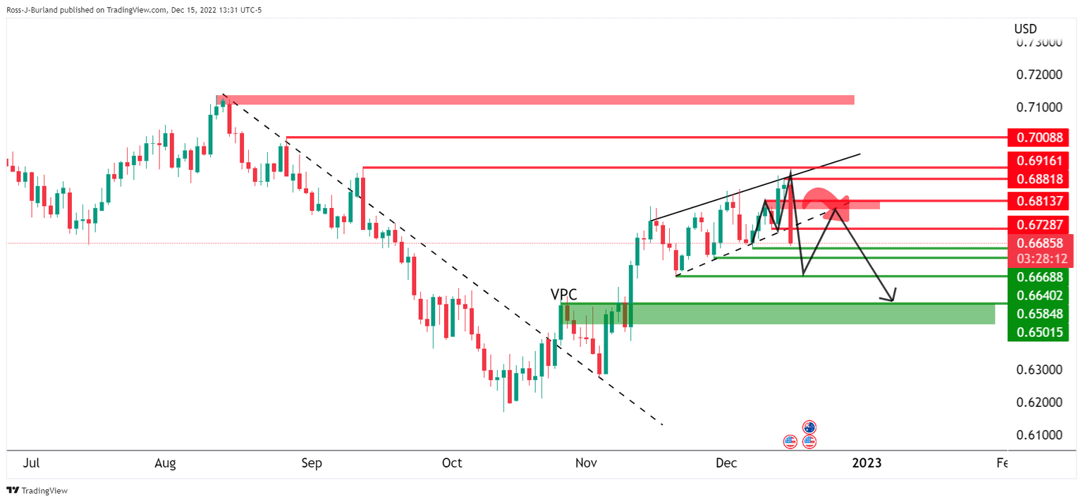 As for AUD/USD, the price has broken channel support and there are eyes on a break to the Volume Point of Control (VPC) of the late August to mid-October bear cycle: