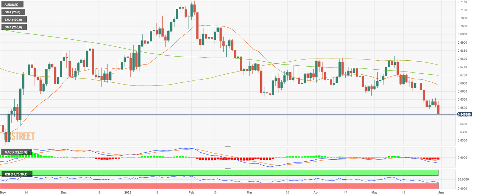 AUD/USD falls to multi-month low below 0.6500 ahead of US labor market data