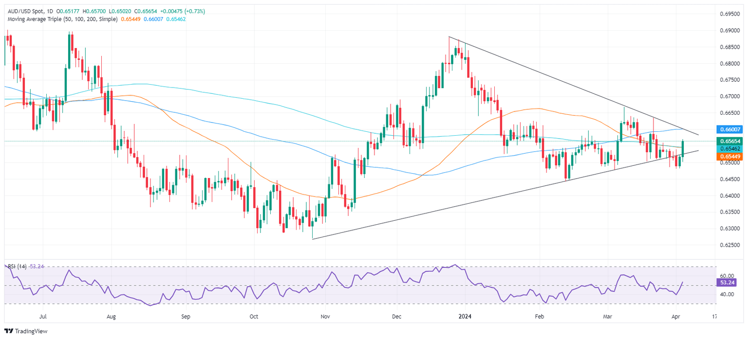 The Aussie Dollar posted solid gains against the US Dollar on Wednesday, boosted by falling US Treasury yields and a soft US Dollar. Federal Reserve policymakers grabbed the headlines, while US economic data was mixed, with a strong ADP report but softer PMIs. The AUD/USD trades at 0.6565, posting minimal gains of 0.02% early during Thursday’s Asian session.