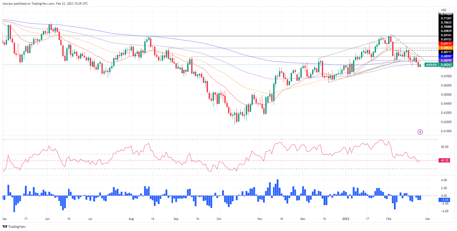AUD/USD recovered some ground on Thursday after falling to fresh February lows at 0.6803, though it recovered some ground, despite overall US Dollar (USD) strength across the board. A risk-on impulse is another reason that it’s underpinning the Australian Dollar (AUD). At the time of typing, the AUD/USD exchanges hands at 0.6826, above its opening price by 0.39%.