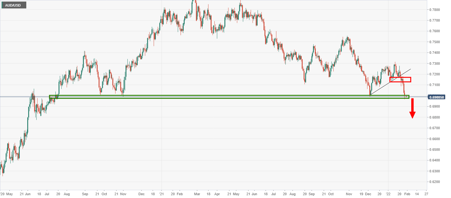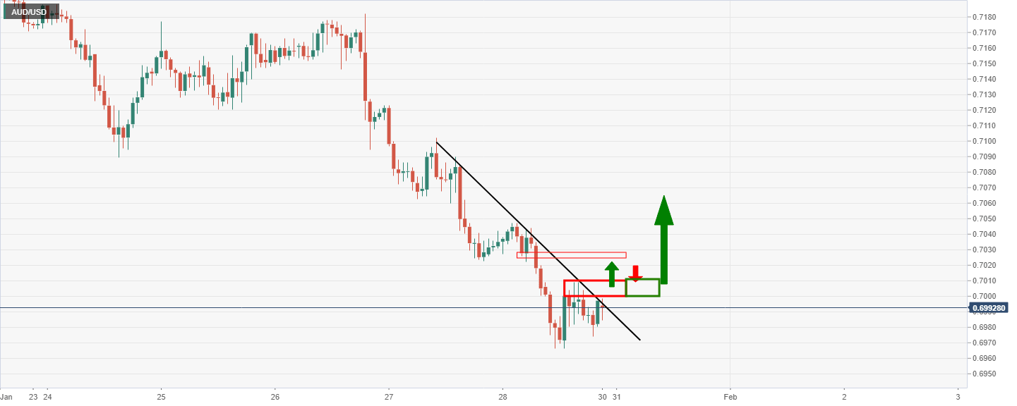 AUD/USD ended a bad week at a critical support area on the charts, however, traders will be keen to reposition themselves ahead of what could be a hawkish teat at the Reserve bank of Australia. For the open, 0.7010 will be an important level on the upside for the bulls to clear.