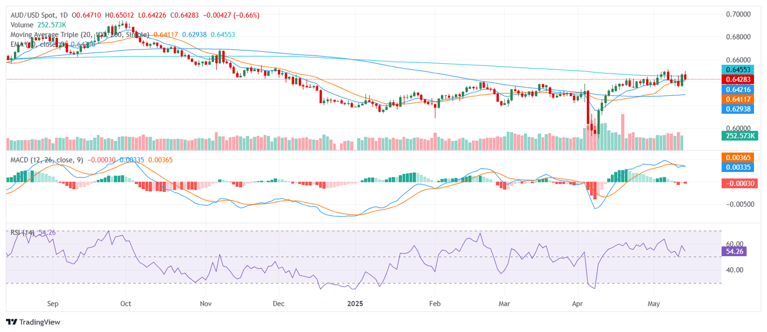 - Key technical levels include support around 0.6420 and resistance near 0.6459, with momentum indicators reflecting a neutral bias.