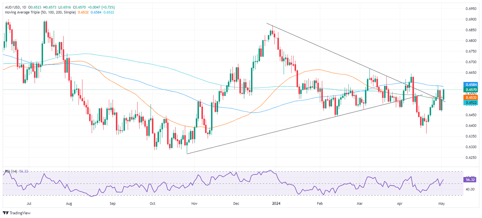 The Australian Dollar registered solid gains of 0.65% against the US Dollar on Thursday, courtesy of an upbeat market mood amid solid economic data from the United States (US). However, the Federal Reserve’s (Fed) latest monetary policy decision is still weighing on the Greenback, which finished the session losing 0.27%, as depicted by the US Dollar Index (DXY). The AUD/USD trades at 0.6567, up by a minuscule 0.03%.