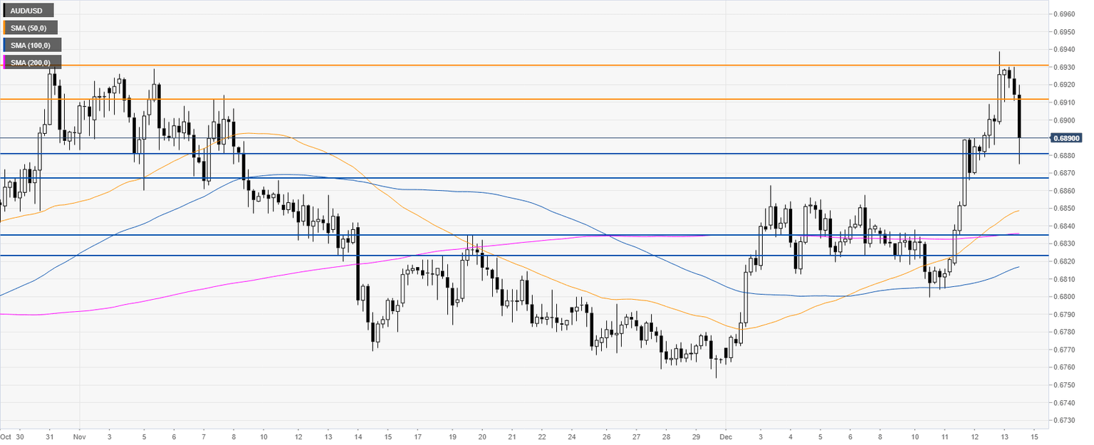 AUD/USD Price Analysis: Aussie eases from 2.5-month highs, trades below 0.6900 handle