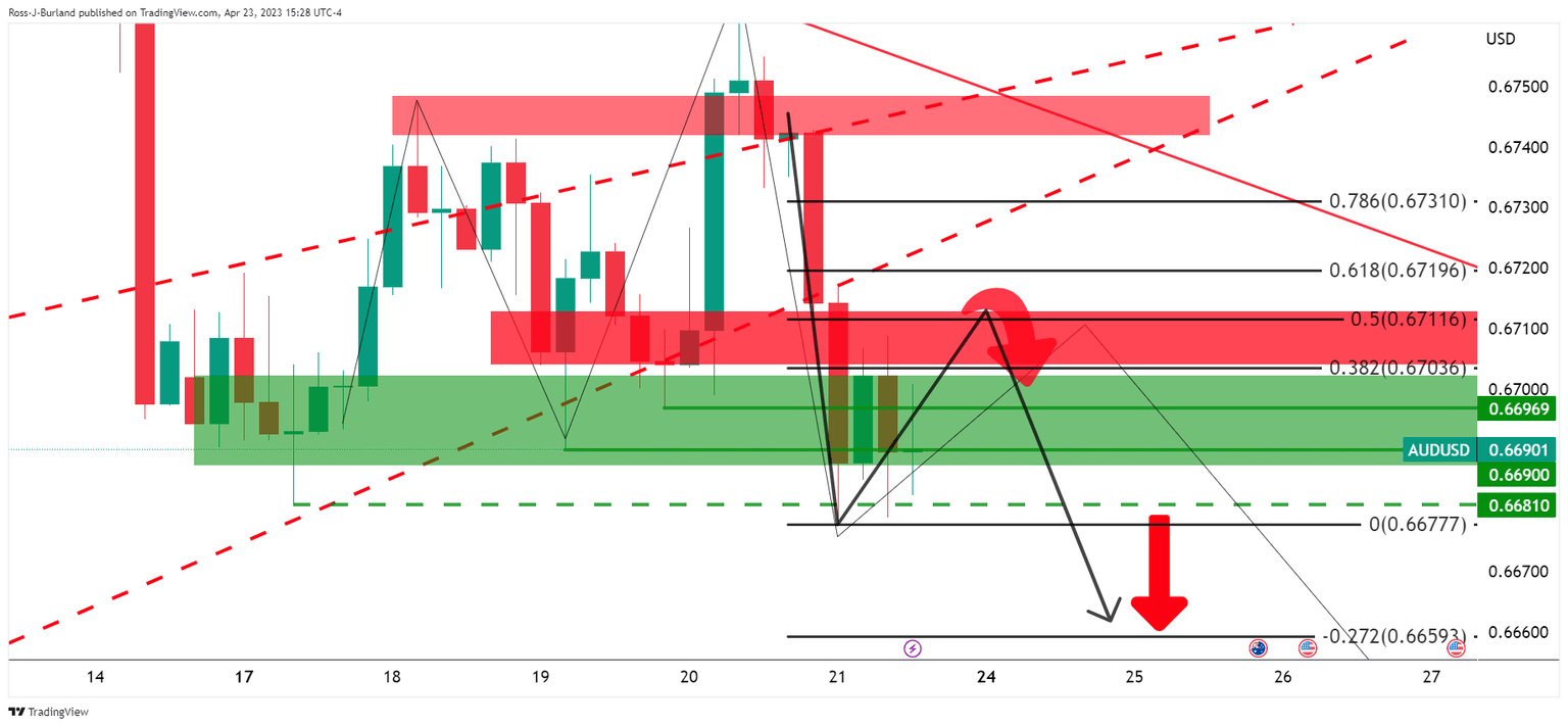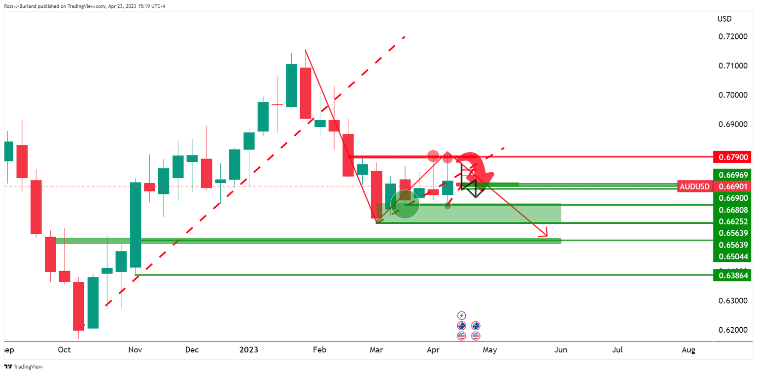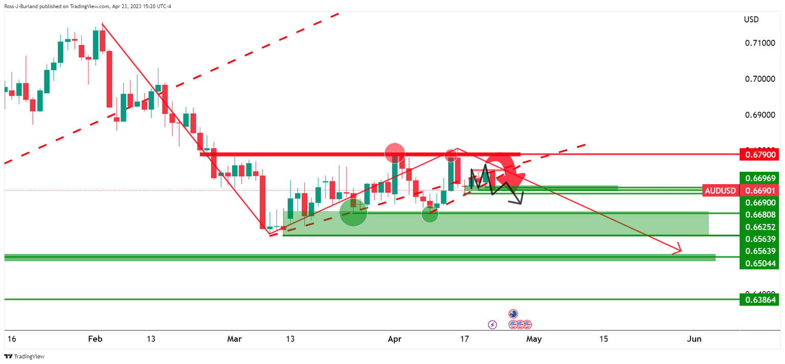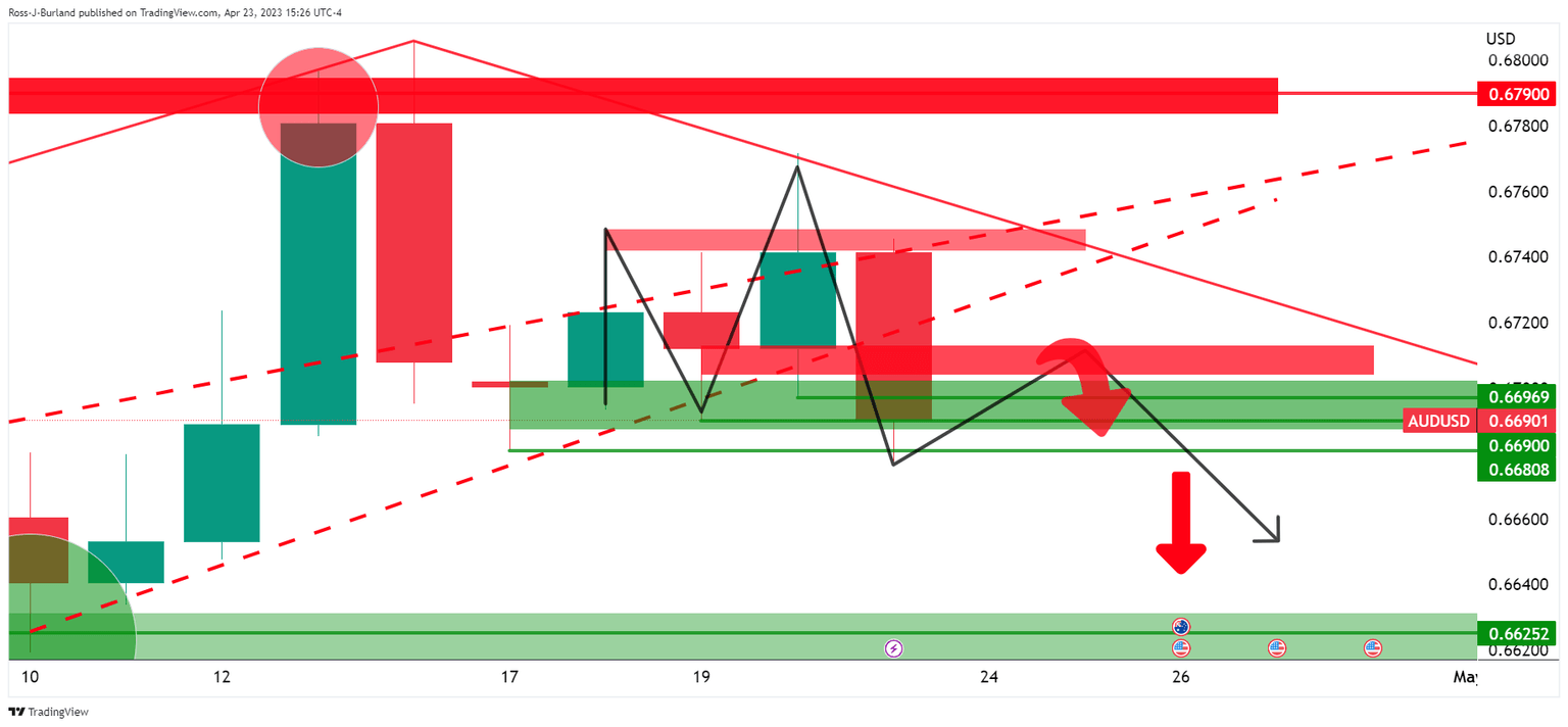 - AUD/USD bears are in the market and price is offered below 0.6710.