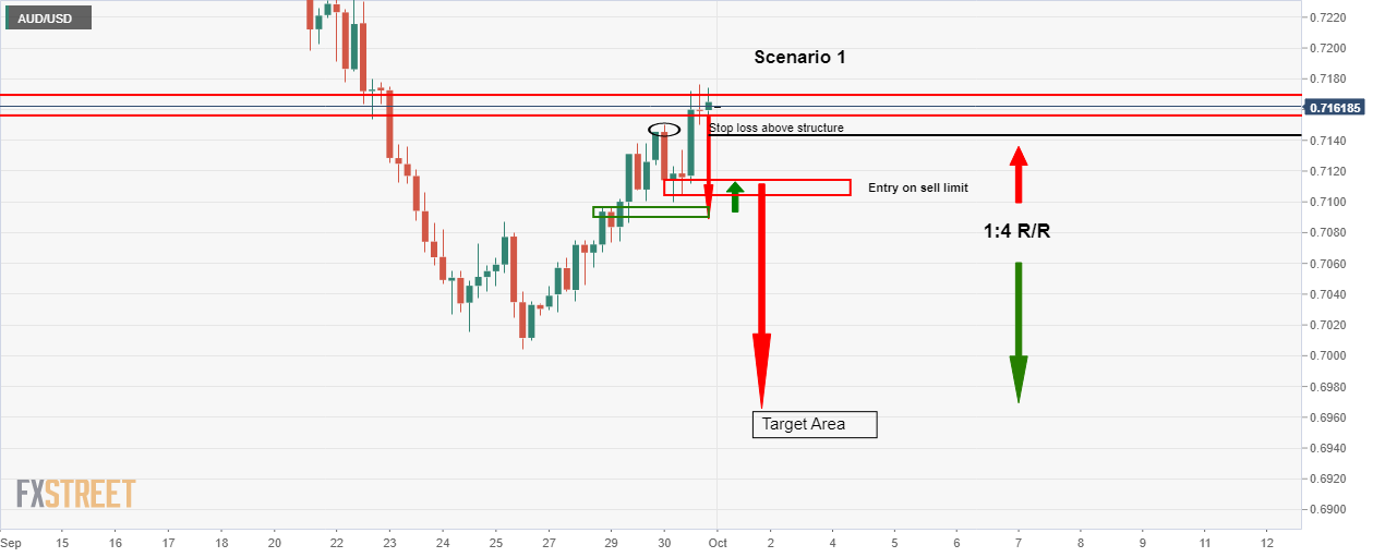 - AUD/USD has bolted from yesterday's analysis leaving little left on the table for bulls seeking a discount.