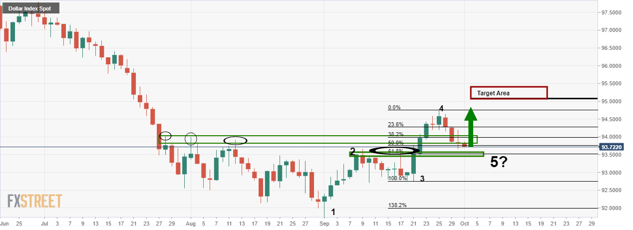 In an alternative scenario, should the US dollar bleed some more to a projected 93.50 support area in the DXY, and AUD/USD proceeds to higher structure, a similar setup should prevail.