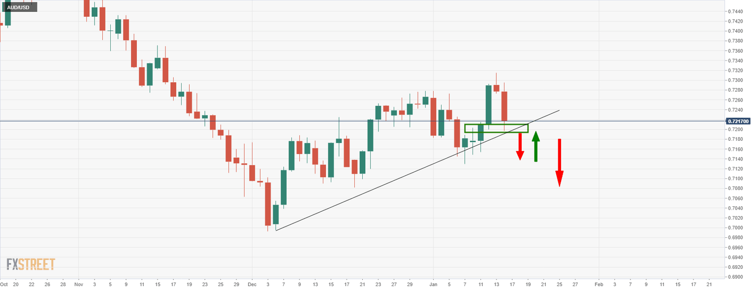 For the start of the week, AUD/USD has been on the backfoot having succumbed to a USD rebound on Friday. The following takes into account the price action in the greenback and the prospects for more upside which could tip the Aussie over the edge for the week ahead.