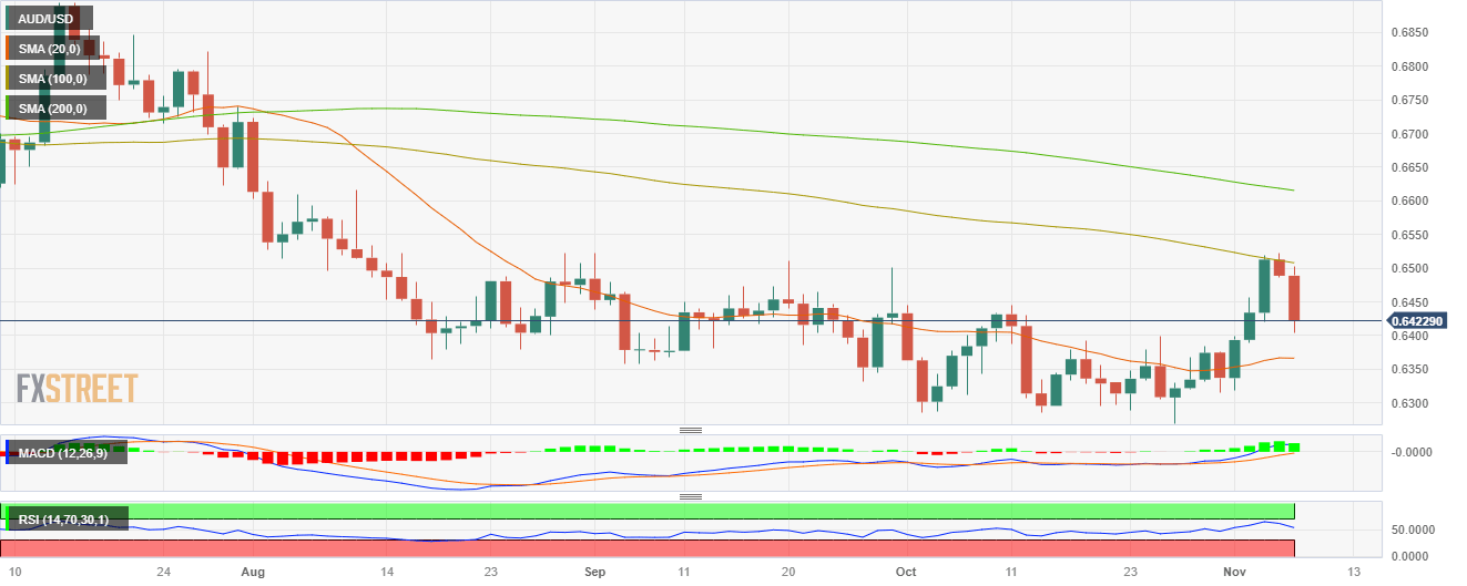 - The AUD/USD declined to a low near 0.6400, seeing 1.05% losses