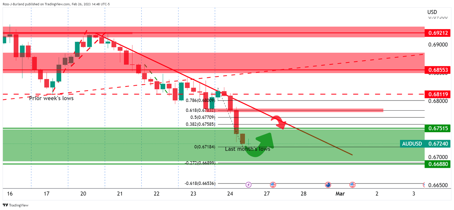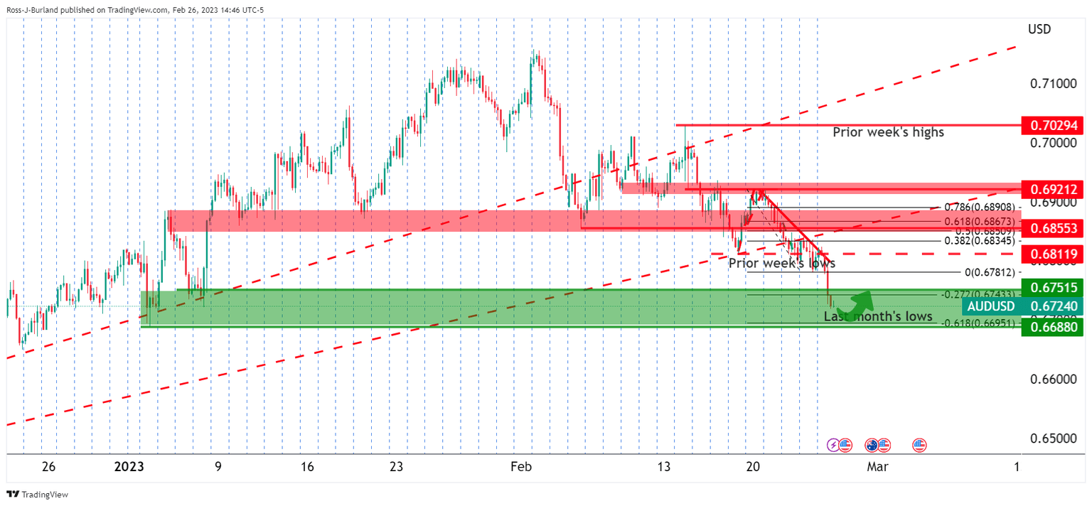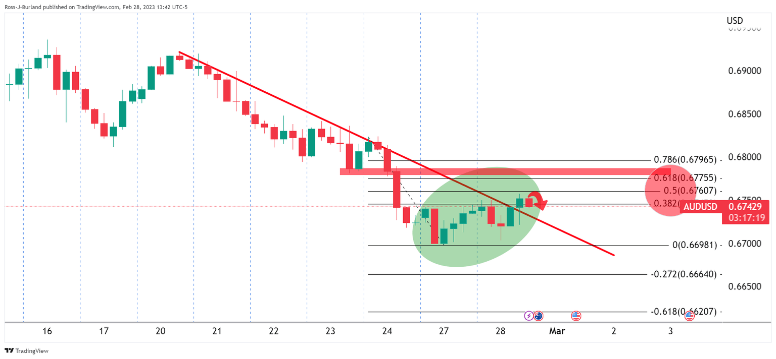 - AUD/USD bulls eye the 78.6% Fibonacci near 0.6800.