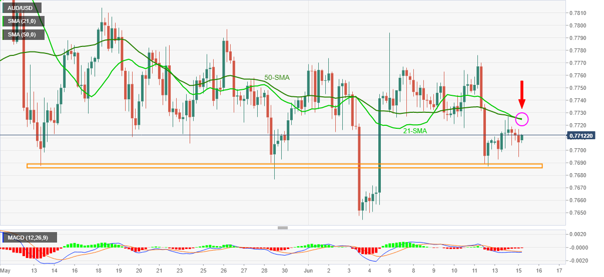 AUD/USD Price Analysis: Impending bear cross probes bounce off monthly support near 0.7700