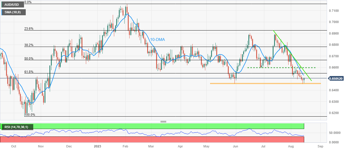 AUD/USD recaptures the 0.6500 round figure while extending the early Asian session rebound from the lowest level since November 2022 amid the Tuesday morning in Europe.