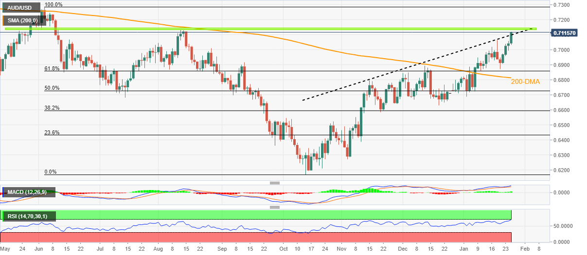 AUD/USD Price Analysis: Refreshes five-month high but 0.7140 could test bulls