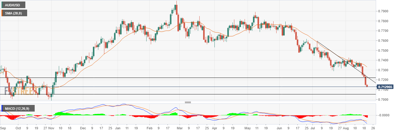 AUD/USD Price Analysis: Refreshes yearly lows as bears dominate below 0.7120