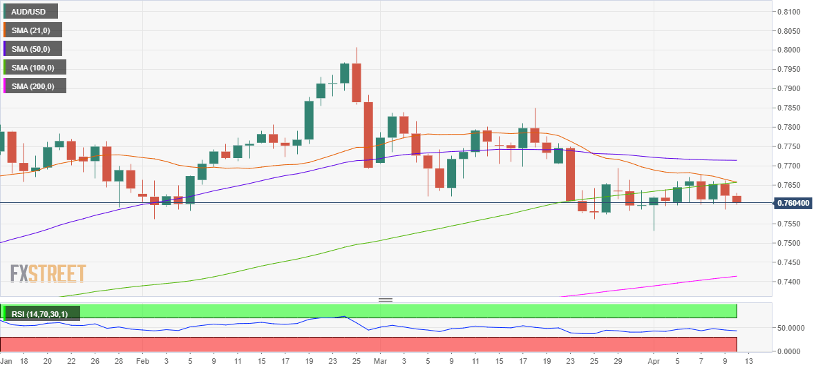 AUD/USD is back in the red zone starting out a fresh week on Monday, having faded Friday’s rebound to near 0.7625 region.