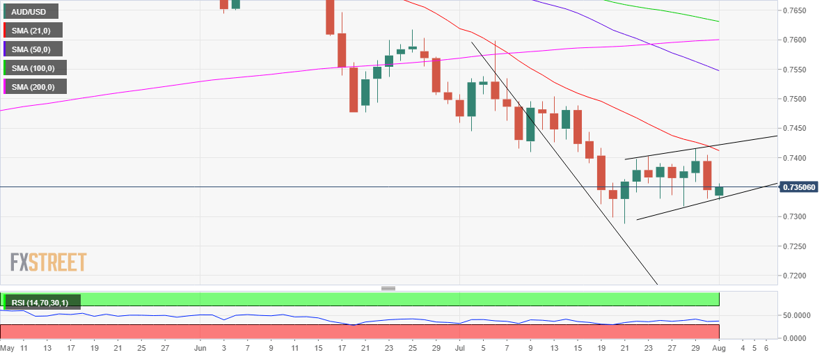 Meanwhile, any recovery attempts could face stiff resistance around 0.7420, where the bearish 21-Daily Moving Average (DMA) and rising trendline hurdle intersect.
