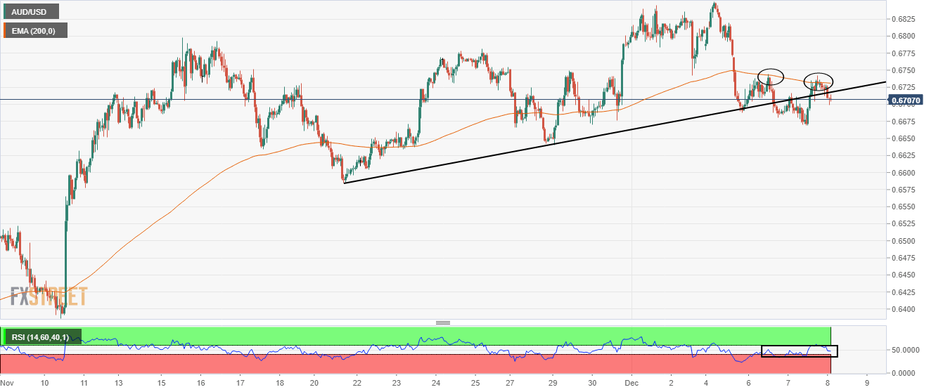 AUD/USD Price Analysis: Struggles to sustain above 0.6700 as 200-EMA caps upside