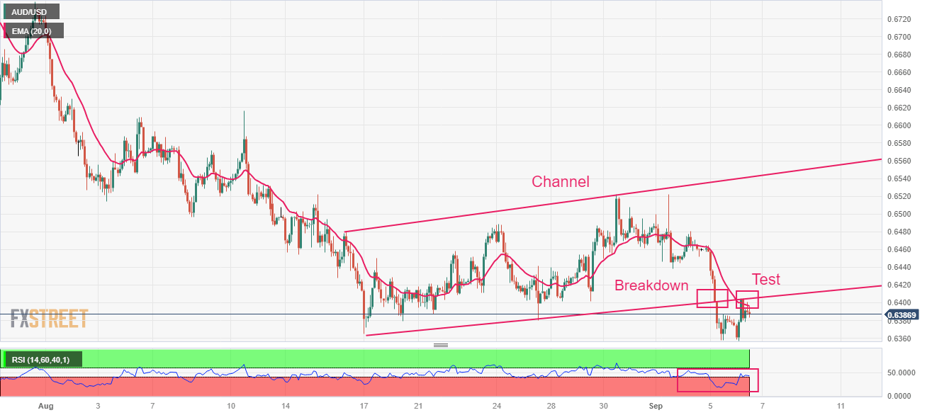 AUD/USD Price Analysis: Tests channel breakdown near 0.6400