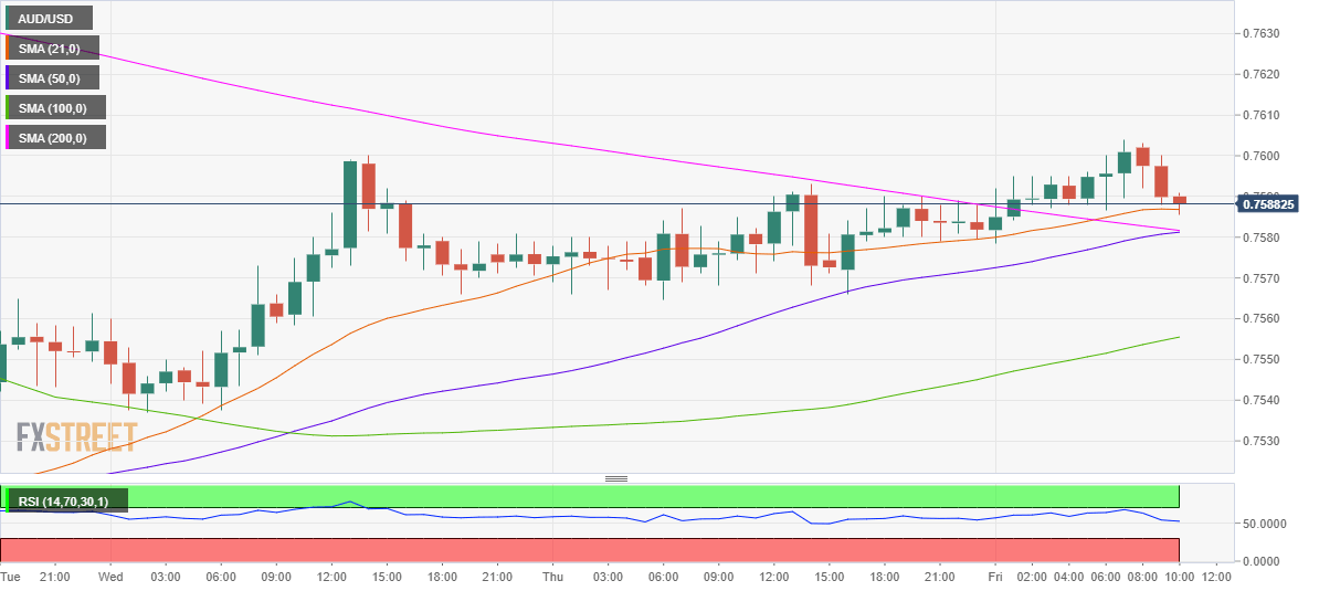 - AUD/USD reverts to test the critical short-term support at 0.7586.