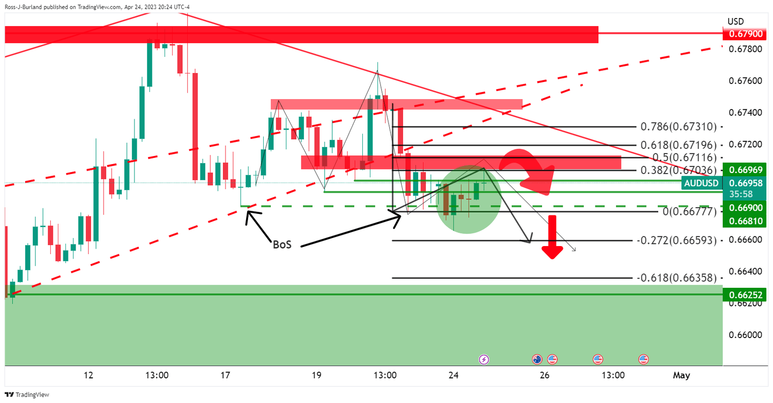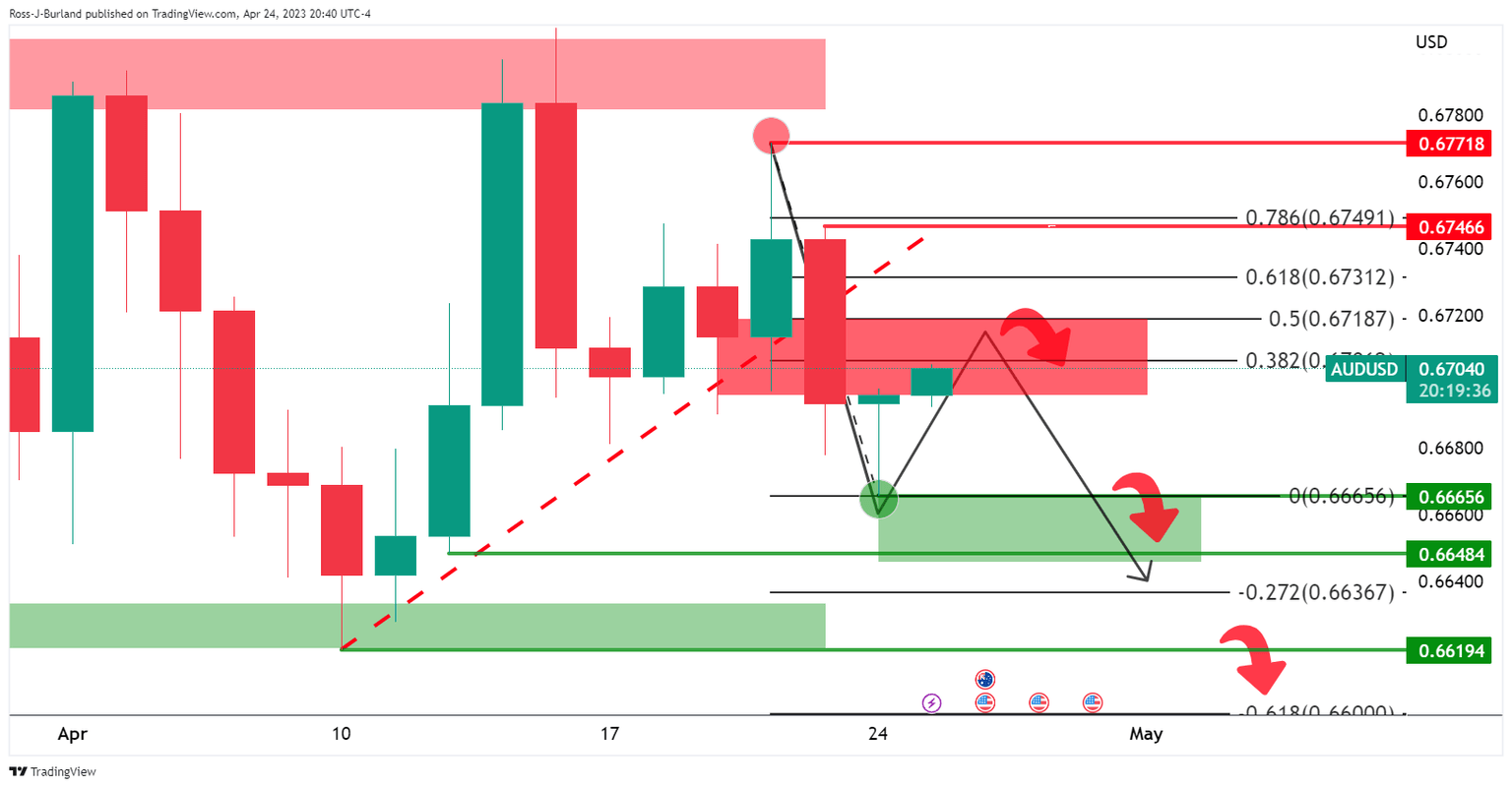 - AUD/USD bears need to show up by the 0.6720s or below.
