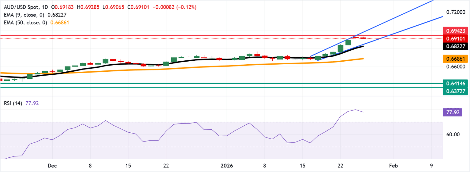 AUD/USD Price Forecast: Holds position near 0.6900 due to overbought conditions