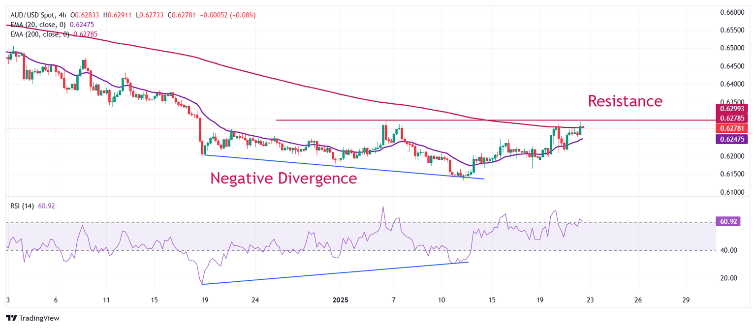 The AUD/USD pair revisits the monthly high around 0.6300 in Wednesday’s North American session. The Aussie pair ticks higher as the Australian Dollar (AUD) gains on reports that United States (US) President Donald Trump threatens to raise 10% tariffs on China from February 1.