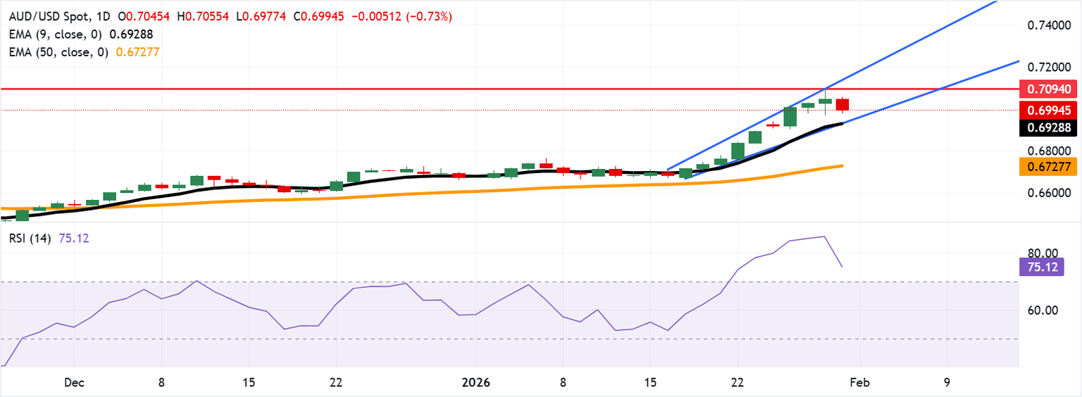 AUD/USD Price Forecast: Tests 0.7000 support as 14-day RSI suggests overbought conditions