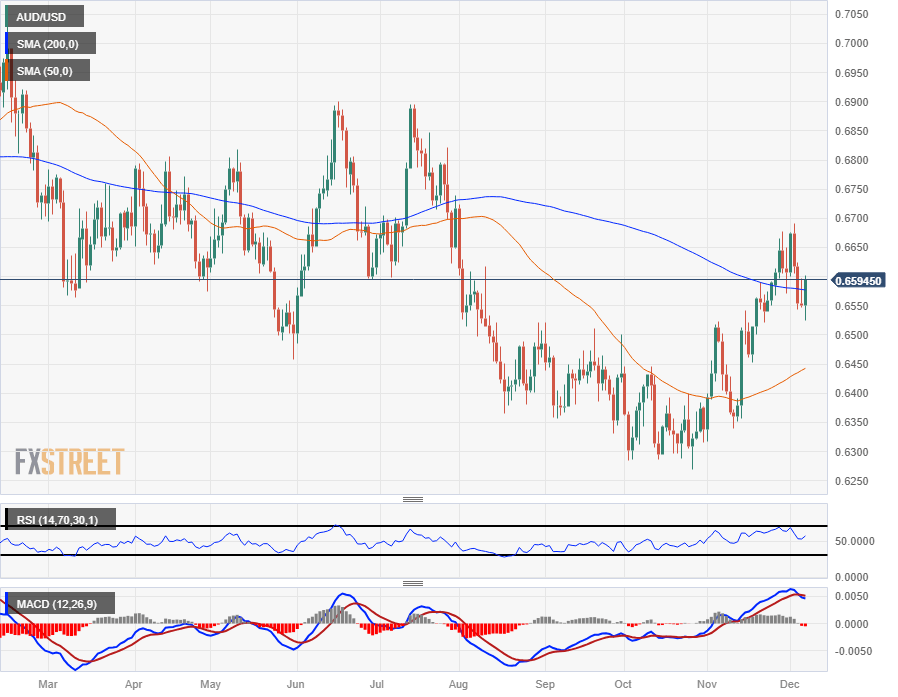 The Australian Dollar (AUD) slipped in the early Thursday market session, dipping into a two-week low near 0.6530 before catching a ride on a broad-market risk rally to bound back within reach of 0.6600.