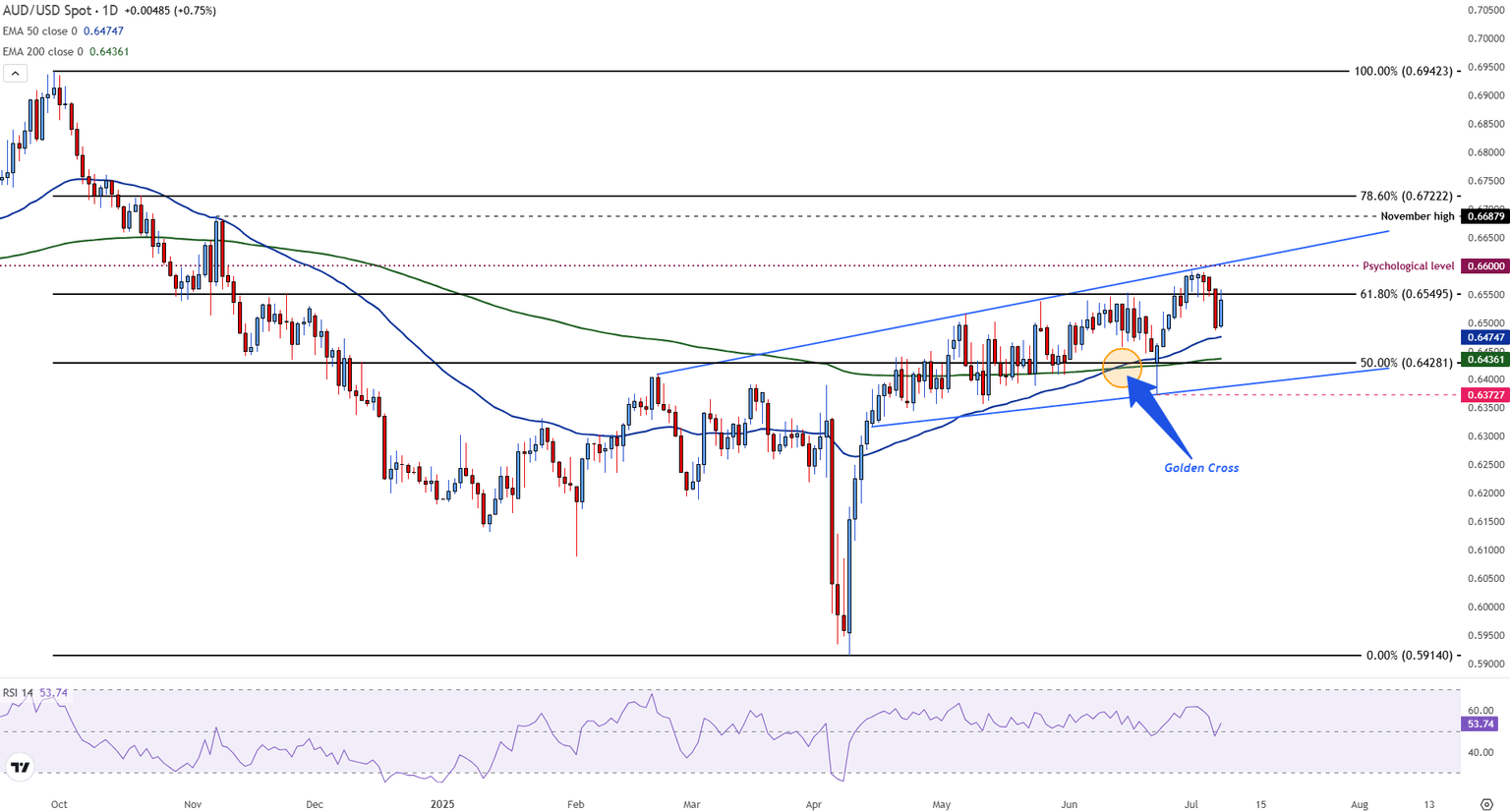 AUD/USD eyes 0.6550 resistance as Golden Cross supports broader uptrend