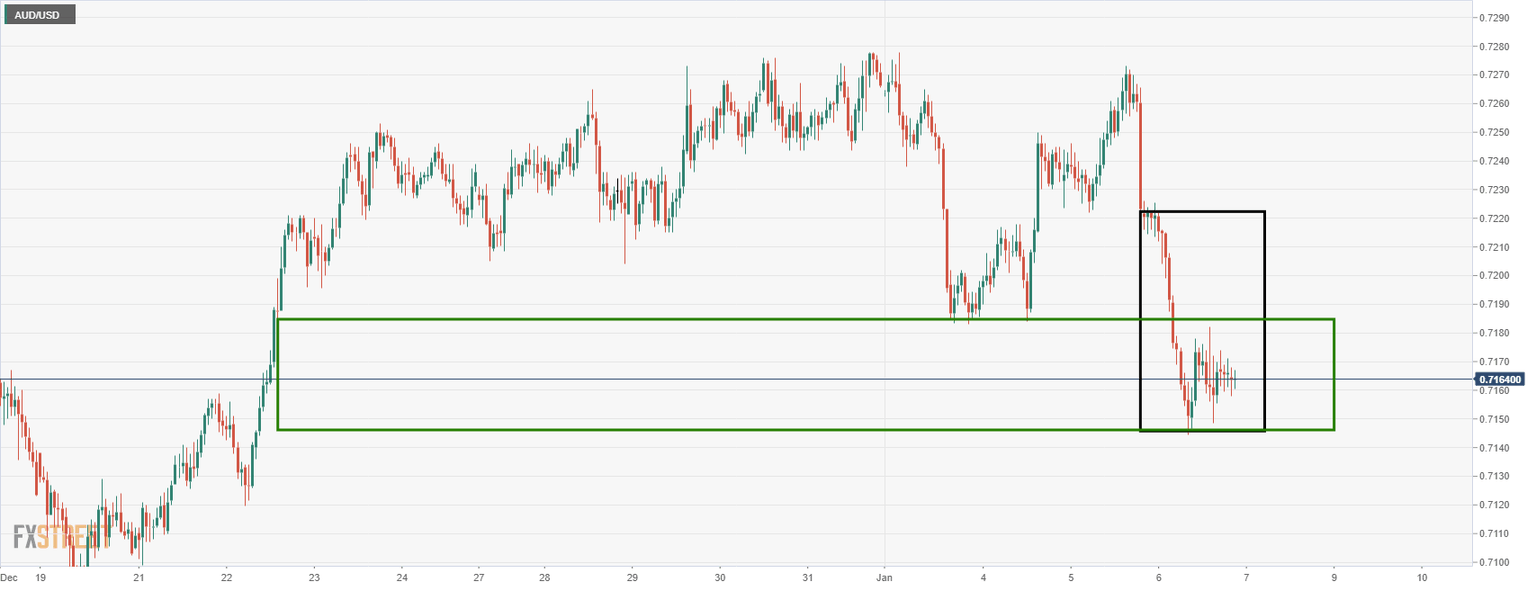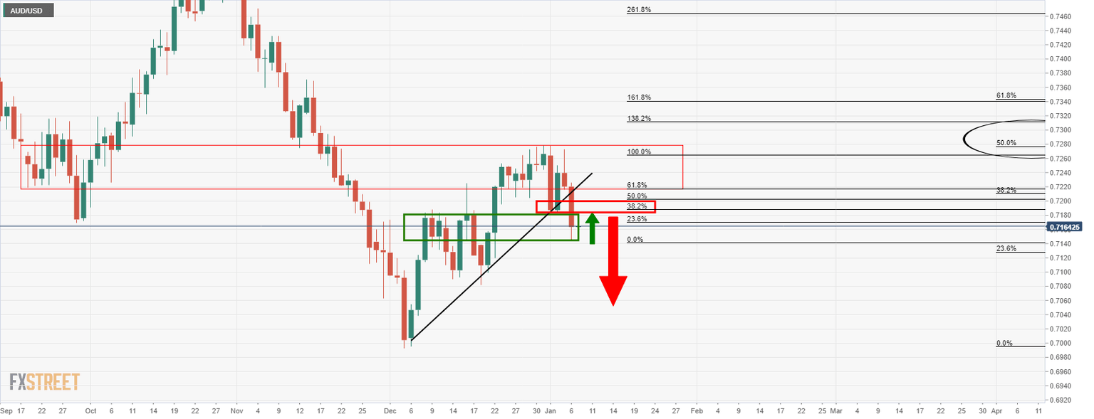 On a break of weekly support, near 0.7150, the prospect of a downside continuation will be in play. Meanwhile, there is room for a correction to the old daily support near 0.72 the figure.