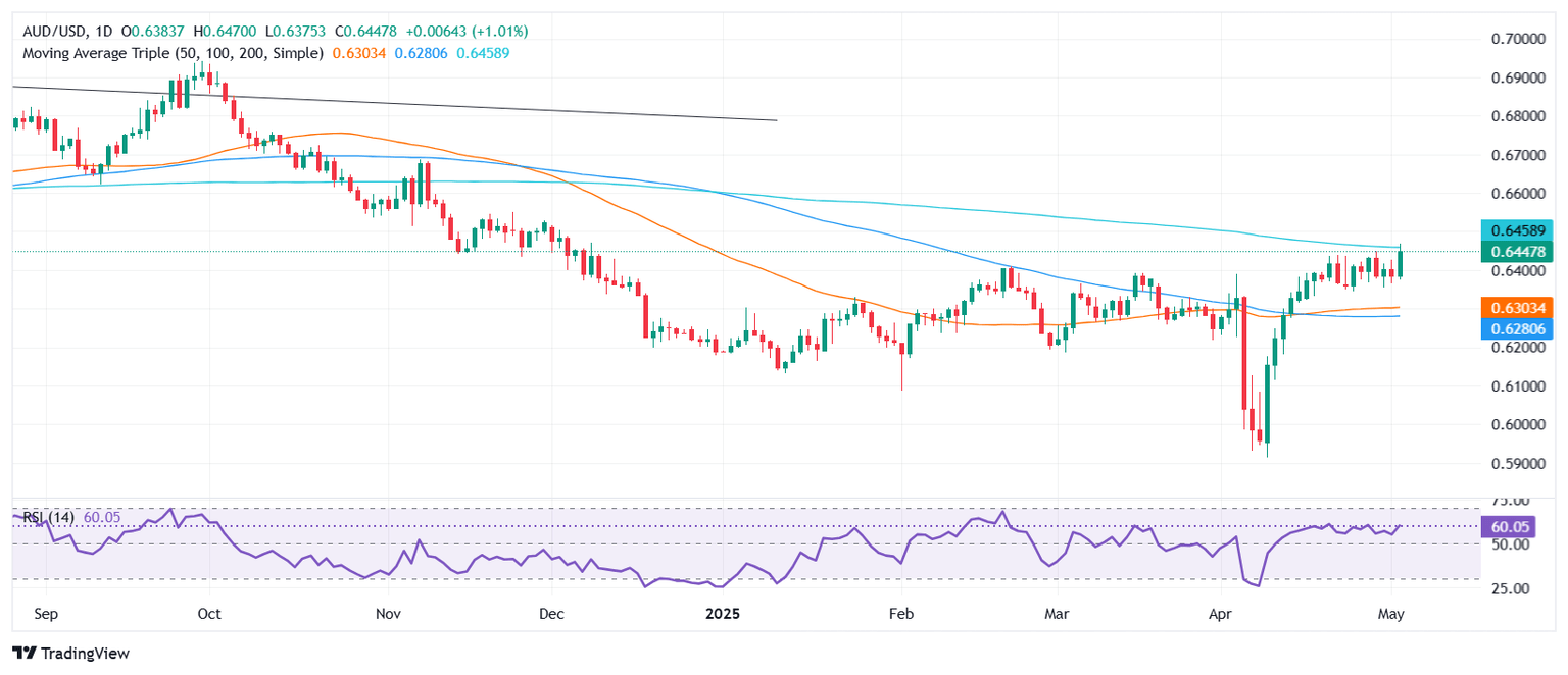 The Australian Dollar surged to a new year-to-date (YTD) high of 0.6469, gaining over 1.20% following a strong jobs report in the United States (US) that suggested the economy remains solid.