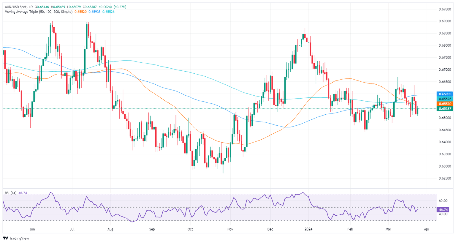 The Aussie Dollar (AUD) begins the Asian session virtually unchanged vs. the US Dollar after clocking solid gains of 0.41% on Monday. At the time of writing, the AUD/USD trades at 0.6539, beneath the 200-day moving average (DMA).