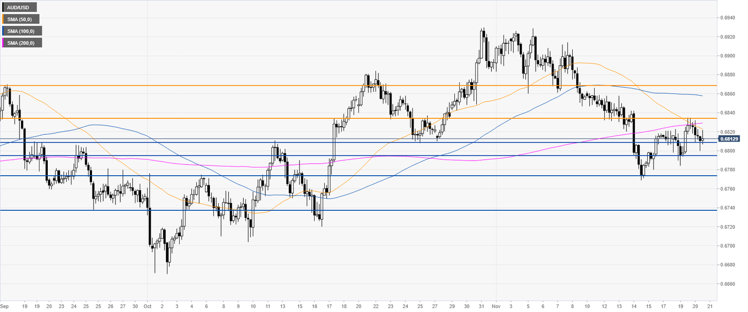 AUD/USD is trading below the 50 SMA, while in the middle of its weekly range. Resistances are seen at the 0.6834 and 0.6868 price levels, according to the Technical Confluences Indicator.