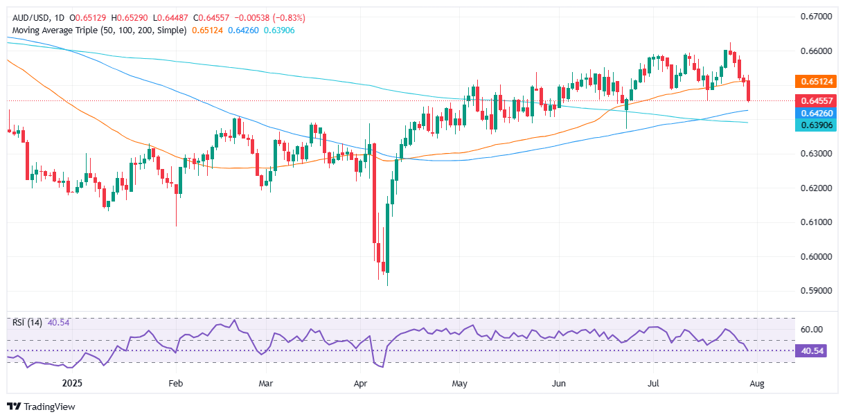 The AUD/USD plunges on Wednesday, extending its agony for fourth straight days after the Federal Reserve (Fed) decision to hold rates, thought not unanimously as two officials Waller and Bowman, who telegraphed their intentions before the blackout period, dissented and voted for a 25 bps rate cut. At the time of writing the pair trades volatile within 0.6448, down 0.76%.