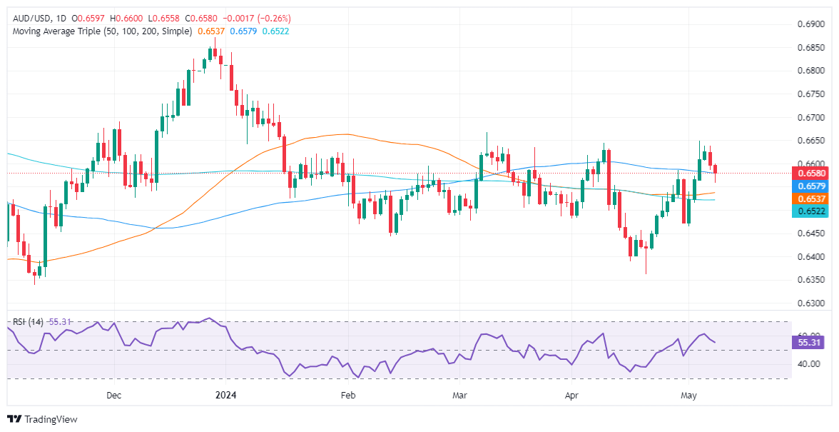 The Australian Dollar extended its losses against the US Dollar for the second straight day, as higher US Treasury bond yields underpinned the Greenback. On Wednesday, the AUD/USD lost 0.26% as market participants turned risk-averse ahead of the release of further US data during the rest of the week, followed by next week’s inflation report. As the Asian session begins, the pair trades at 0.6577, virtually unchanged.
