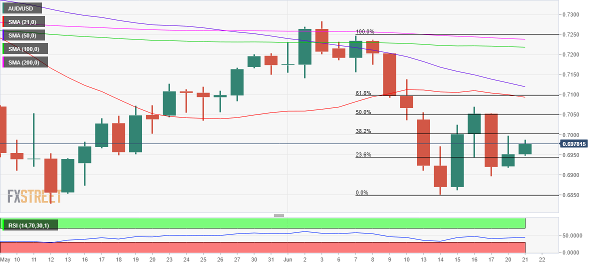 AUDUSD Price Analysis: 38.2% Fibo level at 0.7000 offers stiff resistance