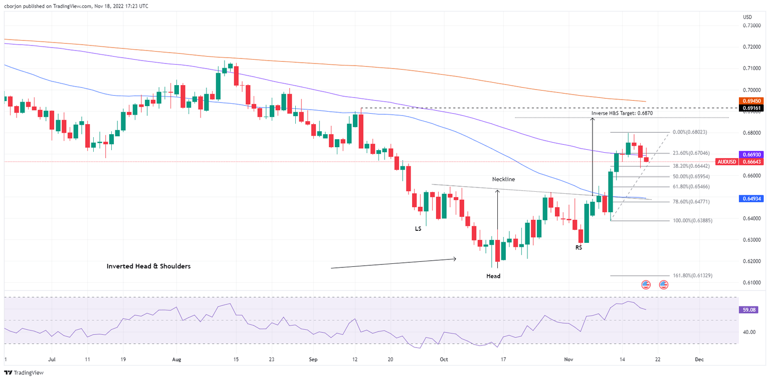 After hitting a weekly high above 0.6800, the AUDUSD erased those gains, extending its losses beneath the 100-day Exponential Moving Average (EMA) at 0.6699. Albeit the inverted head-and-shoulders chart pattern formed in the AUDUSD daily chart is still in play, the sudden reversal could be seen as AUD buyers booking profits and taking a breather before assaulting the 0.6800 psychological level.