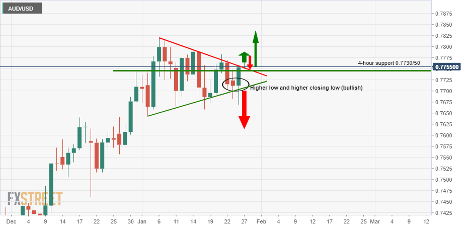 AUD/USD Price Analysis: Bulls counting on a break of symmetrical triangle resistance