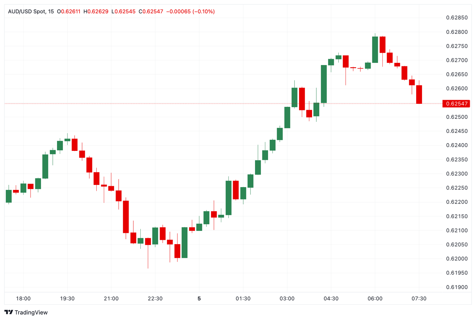 The upbeat Australia GDP report fails to boost the Australian Dollar (AUD). The AUD/USD pair is trading at 0.6258, adding 0.12% on the day.