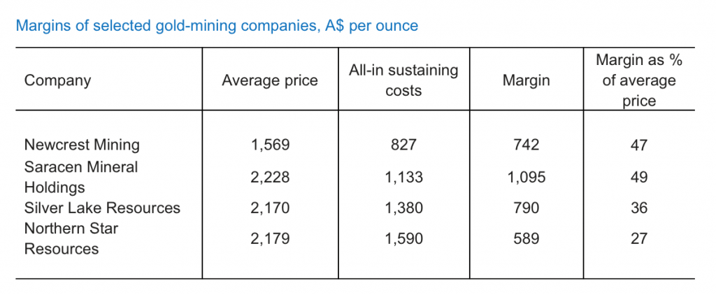 “These margins paired with gold prices that, despite recent pressures, have been rising for the past year and a half, propel miners Down Under to go on with planned new mines or expansions.”