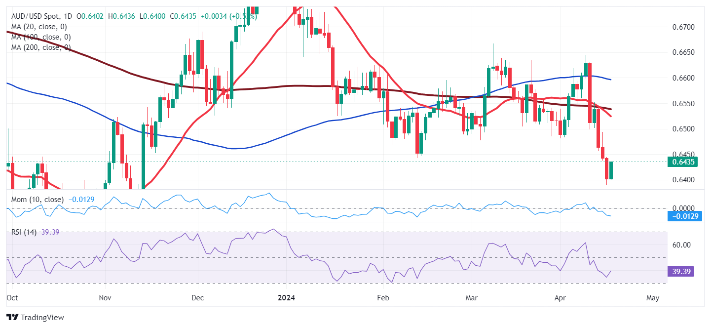 From a technical perspective, Valeria Bednarik, Chief Analyst at FXStreet, notes: “The AUD/USD pair set a fresh 2024 low on Tuesday at 0.6388, as broad US Dollar demand in a risk-averse environment dominates financial boards. The pair is up ahead of the announcement, but the advance seems corrective. Speculative interest is adjusting rate-cut expectations while digesting the latest Middle East developments. The modest improvement in sentiment is short of confirming fears are gone, which means the case for a lower low is alive and kicking.”