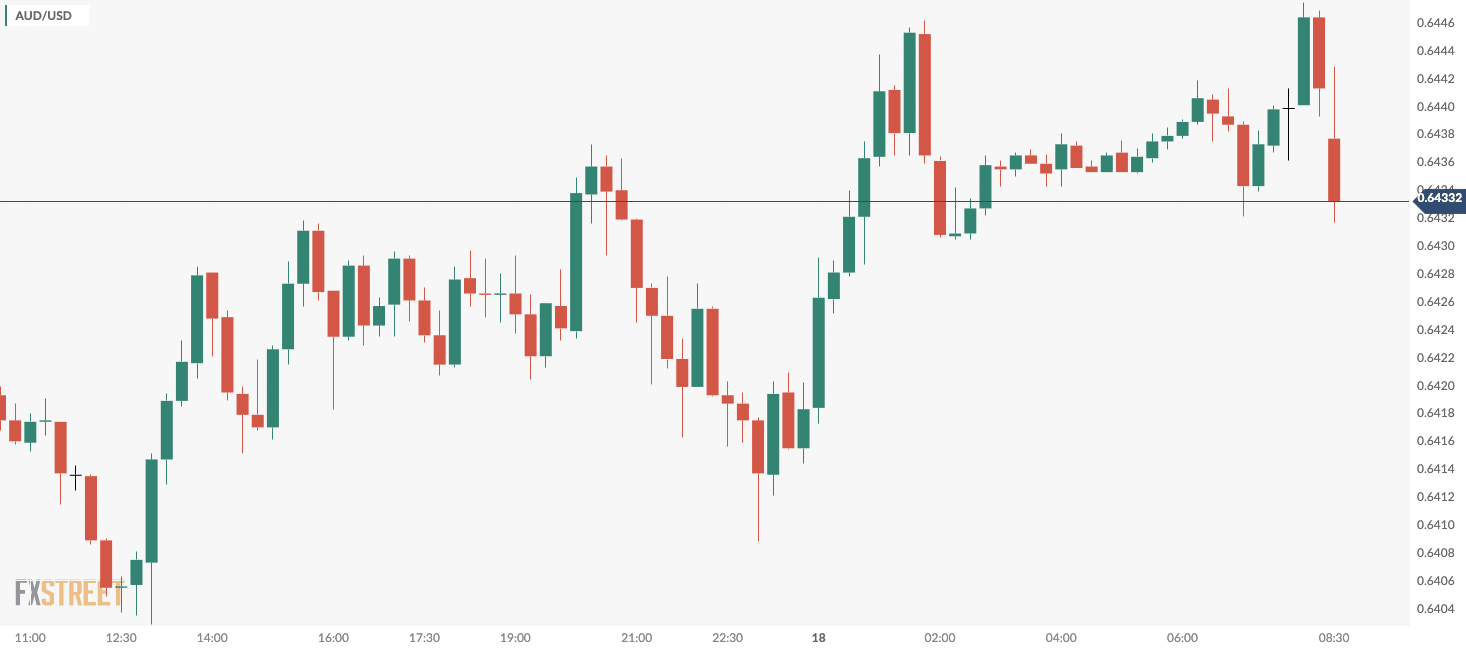 The Australian Dollar attracts some sellers in an immediate reaction to the Australia Employment report. The AUD/USD pair is trading at 0.6433, losing 0.02% on the day.