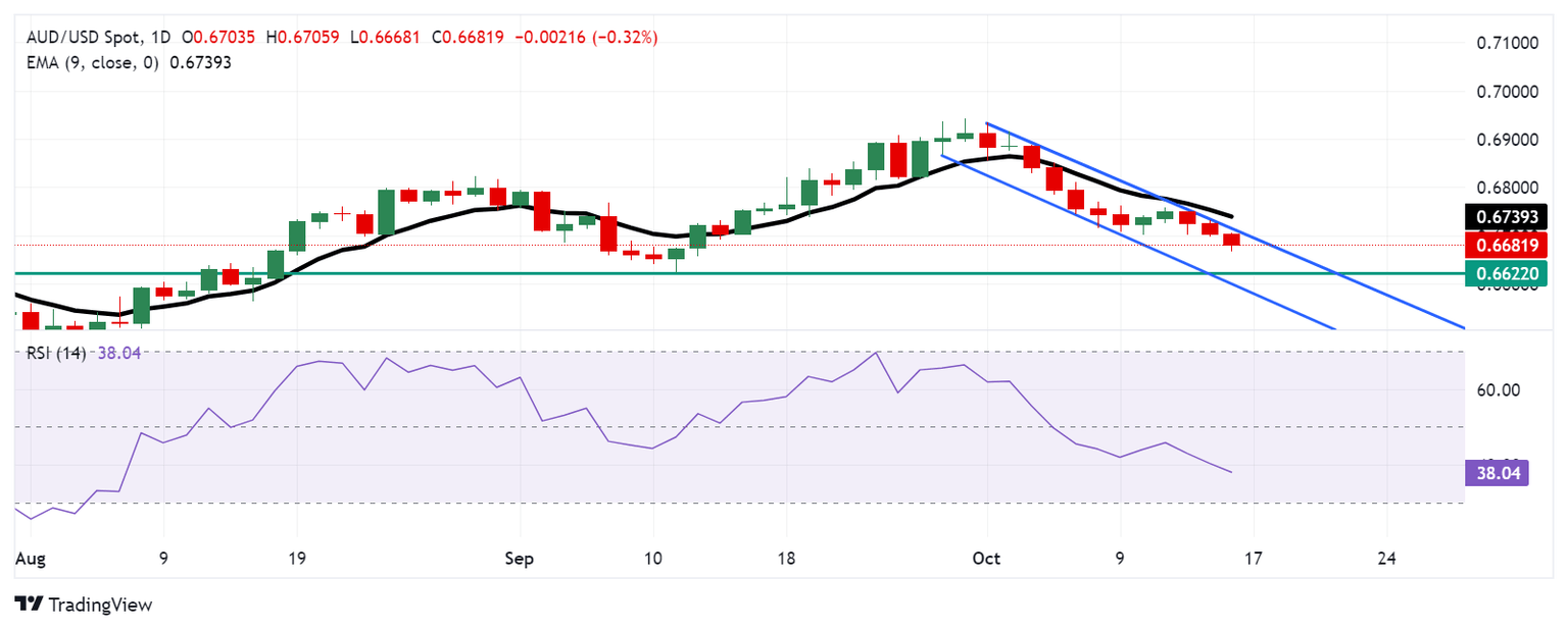 On the downside, the AUD/USD pair may target its eight-week low of 0.6622, last seen on September 11. A break below this level could open the pair's door to test the descending channel's lower boundary near the psychological support level of 0.6600.