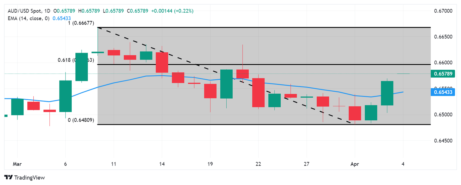 Technical Analysis: Australian Dollar rises to near 0.6580, next key resistance at 61.8% Fibonacci retracement
