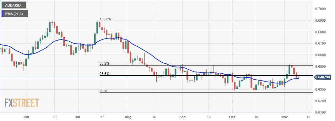 Technical Analysis: Australian Dollar hovers around 0.6400 aligned with 21-day EMA