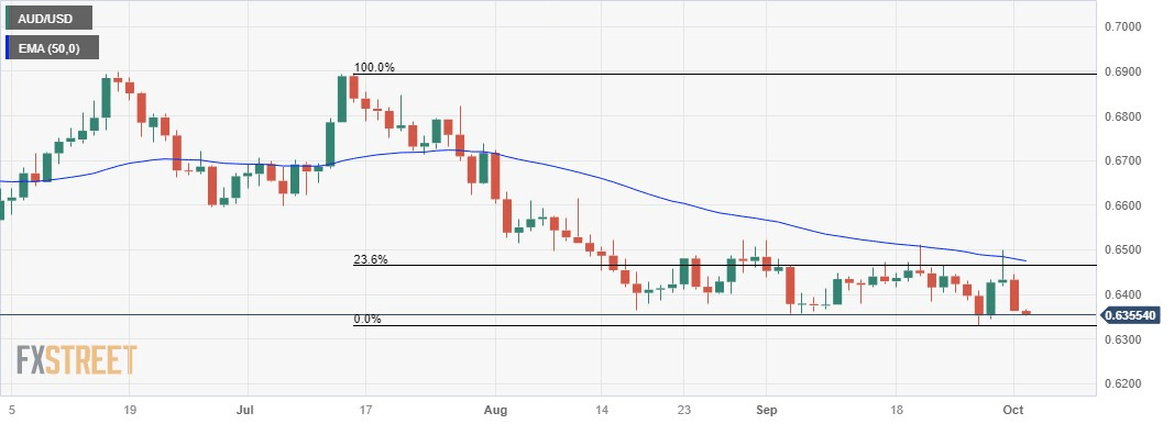 The Australian Dollar (AUD) continues its losses on Tuesday due to another surge in US Dollar (USD) and US Treasury yields. Additionally, the AUD/USD pair is receiving downward pressure on soft policy decisions by the Reserve Bank of Australia (RBA).