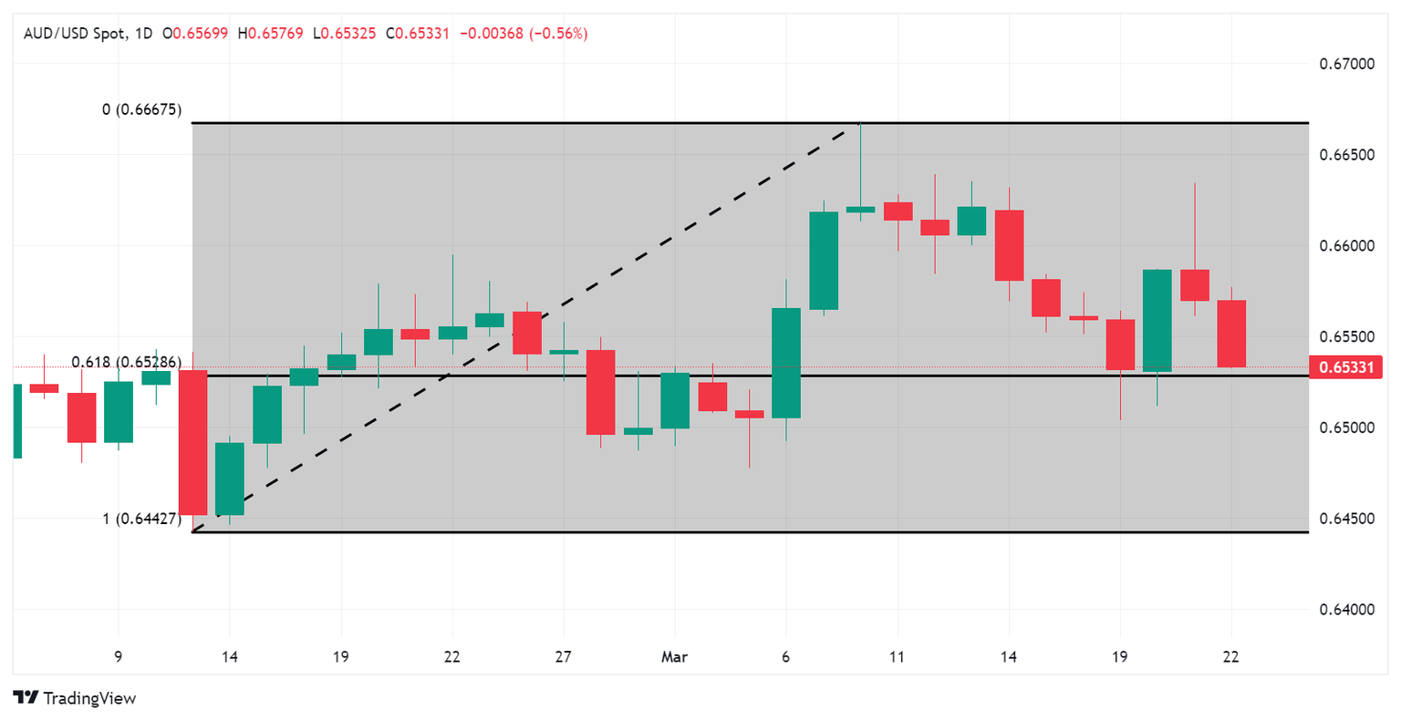 Technical Analysis: Australian Dollar falls to near 0.6540 followed by 61.8% Fibonacci