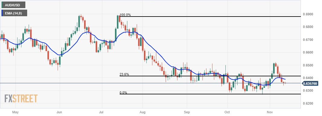 Technical Analysis: Australian Dollar hovers above 0.6350 with a negative tone