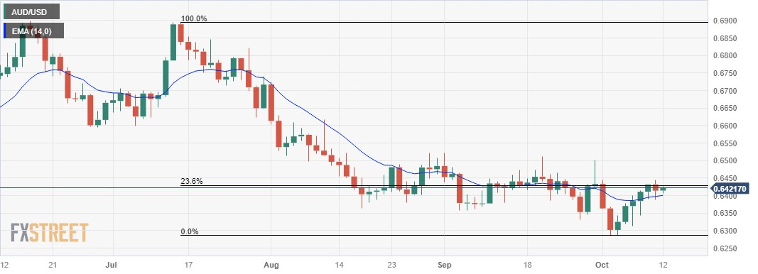 Technical Analysis: Australian Dollar hovers above 0.6400, immediate resistance at 23.6% Fibonacci retracement